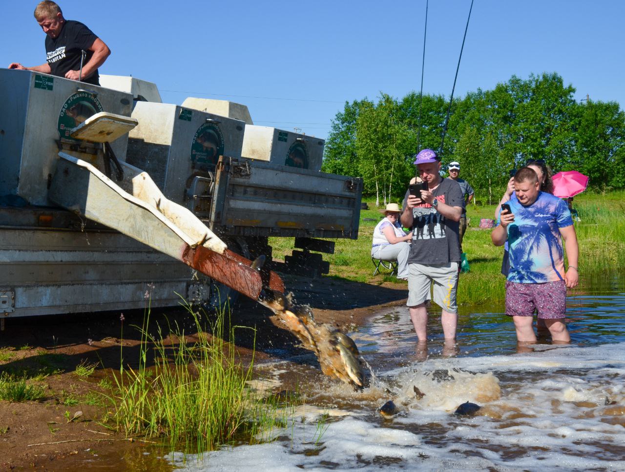 Есть и элитные виды — карась комета (золотые рыбки), карпы кои, амур. Рыбу привезли из рыболовных хозяйств Витебской, Брестской и Минской областей. По самым скромным подсчетам, за время аренды запустили в пруд примерно 15,2 тонны рыбы разных видов. Самая большая добыча рыболова — карп весом 11,2 килограмма.