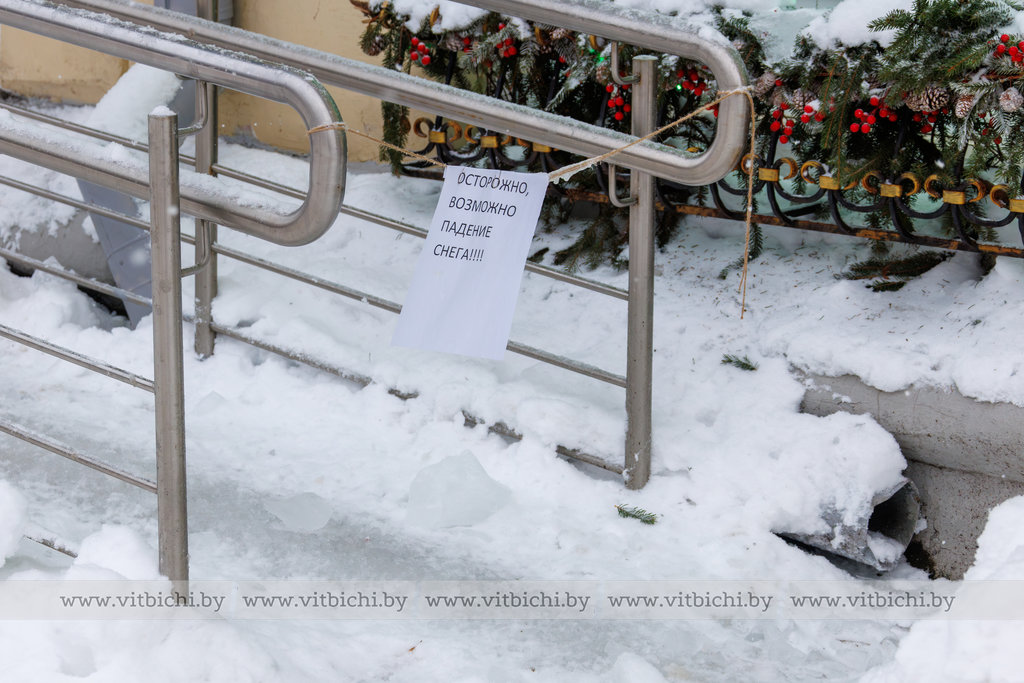 Витебчанам напомнили о мерах предосторожности в связи с риском схода снега и наледи с крыш