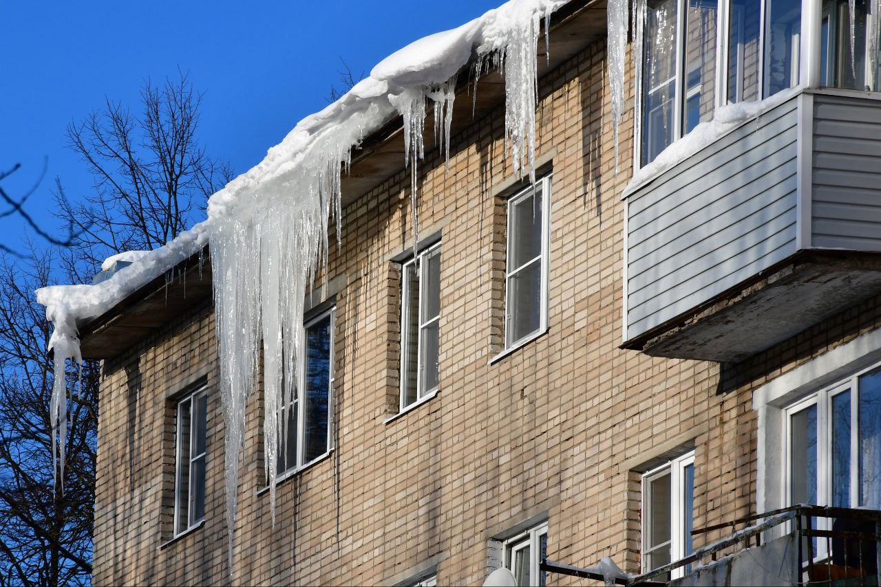 Перепады температуры и обильные осадки приводят к образованию наледи и сосулек, а также к внезапному сходу снега.