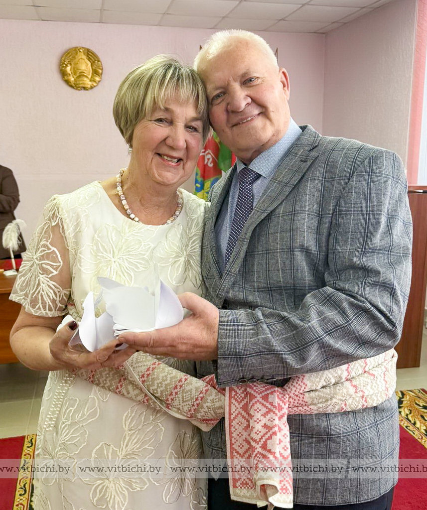Золотой юбилей свадьбы супруги встретили вместе со своими родными в Мазоловском сельисполкоме. Ведь именно здесь, ровно 50 лет назад, они зарегистрировали свой брак, будучи учащимися Лужеснянского сельскохозяйственного техникума.