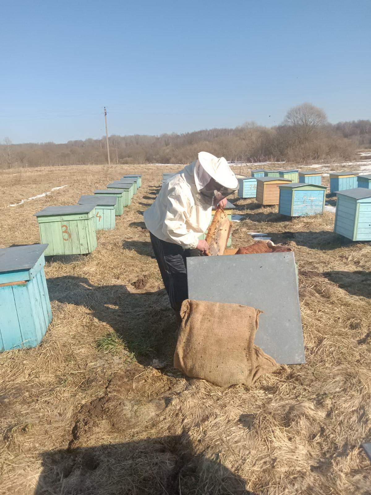 Нескольких солнечных дней хватило, чтобы начала оживать пасека. С приходом тепла прибавилось хлопот у пчеловода Суражского лесхоза Константина Белого. Нужно вовремя очистить и заменить донья, проверить наличие матки, расплода и корма в ульях, подкормить пчел сладким сиропом и напоить водой.