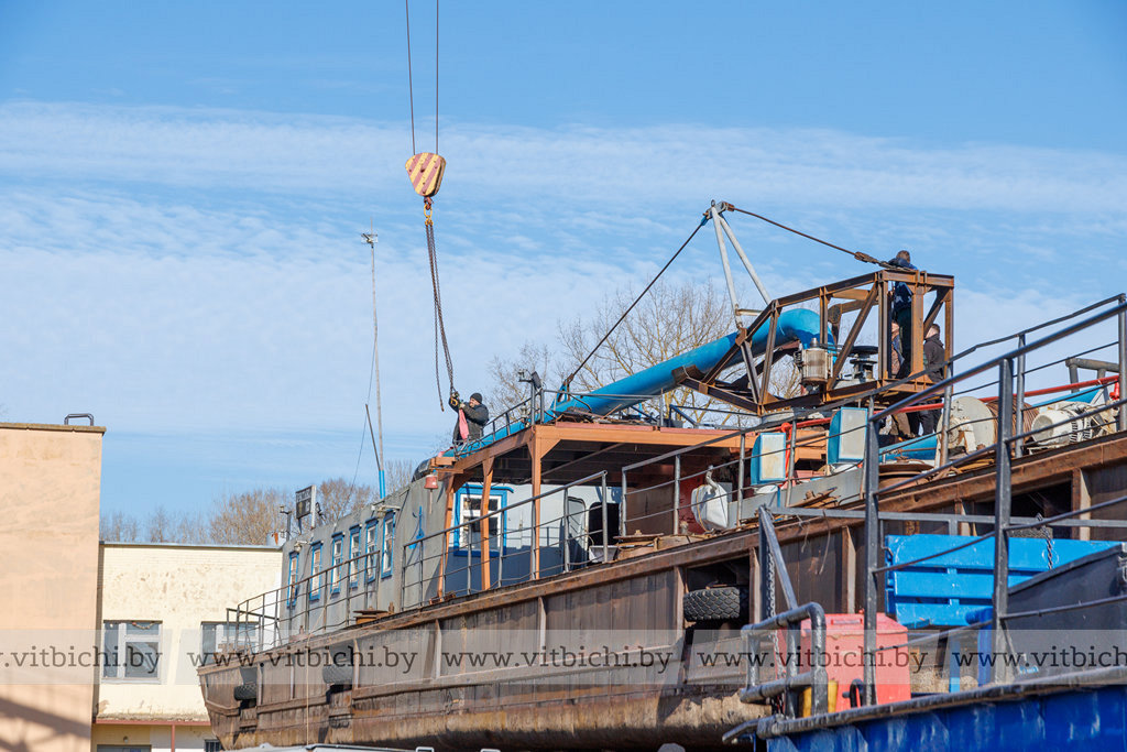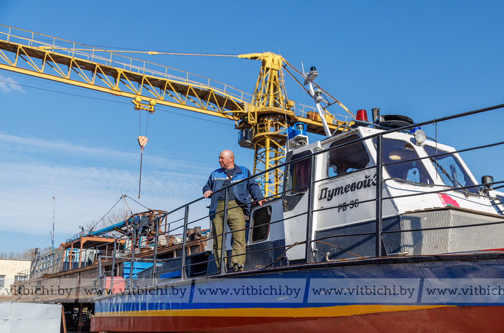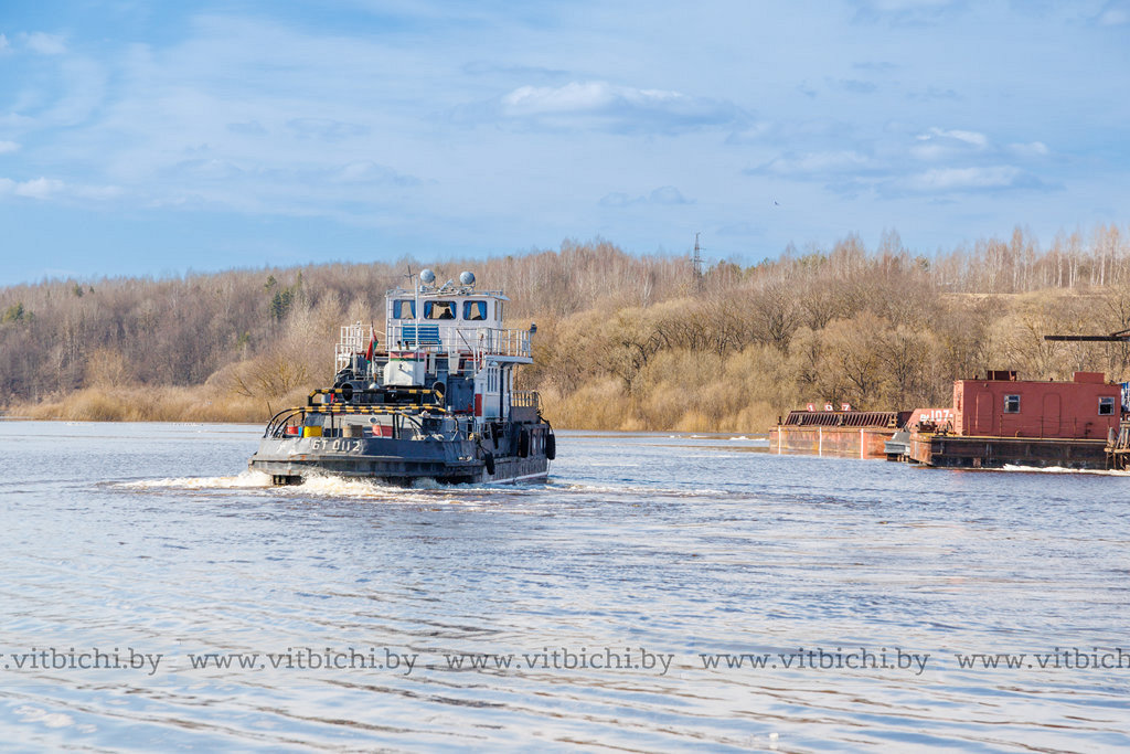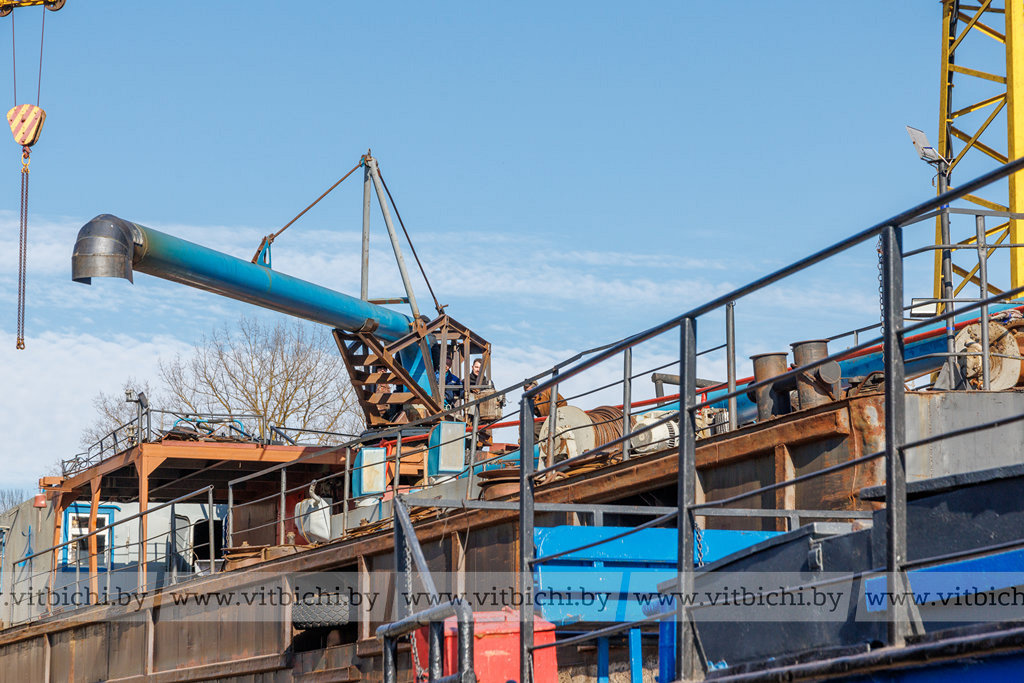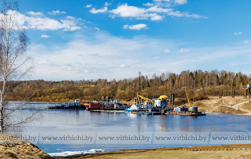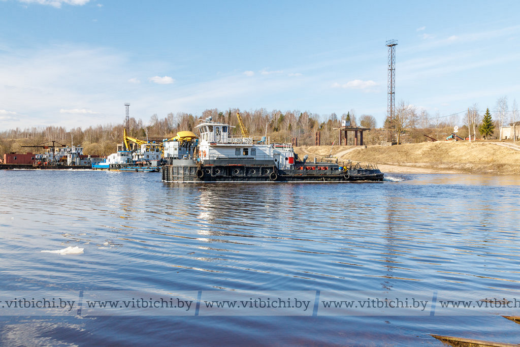 В затоне речного порта деловито кипит разнообразная механическая жизнь: громыхает железо, урчат дизели, гудят гудки. Все плавсредства перед началом навигационного периода отремонтированы, так что к старту подошли в годном техническом состоянии и готовы к работе. Сегодня флот Витебскводтранса — это четыре теплохода, шесть барж, три плавучих крана (КПЛ) и два земснаряда.