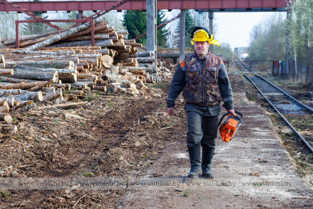 Наши корреспонденты посмотрели, как работает Кирилл. Его рабочее место находится на складе древесины, которую свозят со всех делянок лесхоза. Задача Кирилла — загрузить лесоматериалы в железнодорожные вагоны так, чтобы древесина не повредилась, лежала ровно и чтобы вагон не был полупустой. А для этого нужно всё правильно упаковать.