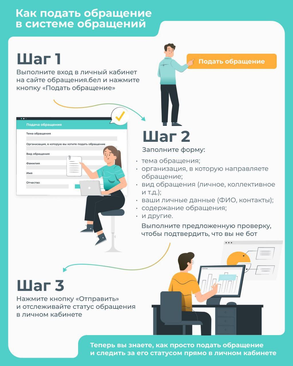 Электронные обращения подаются посредством государственной единой (интегрированной) республиканской информационной системы учета и обработки обращений граждан и юридических лиц (сайт обращения.бел)