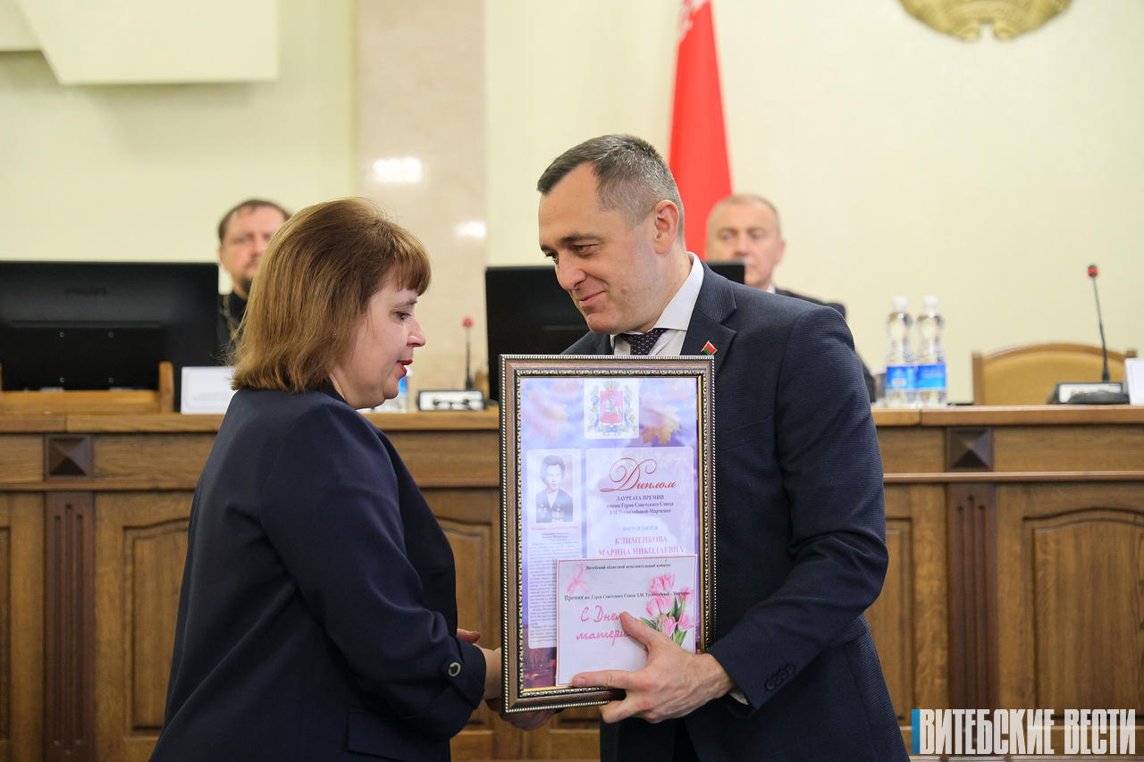 В День матери 11 женщин Витебщины награждены орденом Матери, 25 получили премию облисполкома имени Героя Советского Союза Зинаиды Туснолобовой-Марченко. Председатель облисполкома Александр Субботин, поздравляя представительниц прекрасной половины человечества, отметил важность матери в судьбе каждого человека.