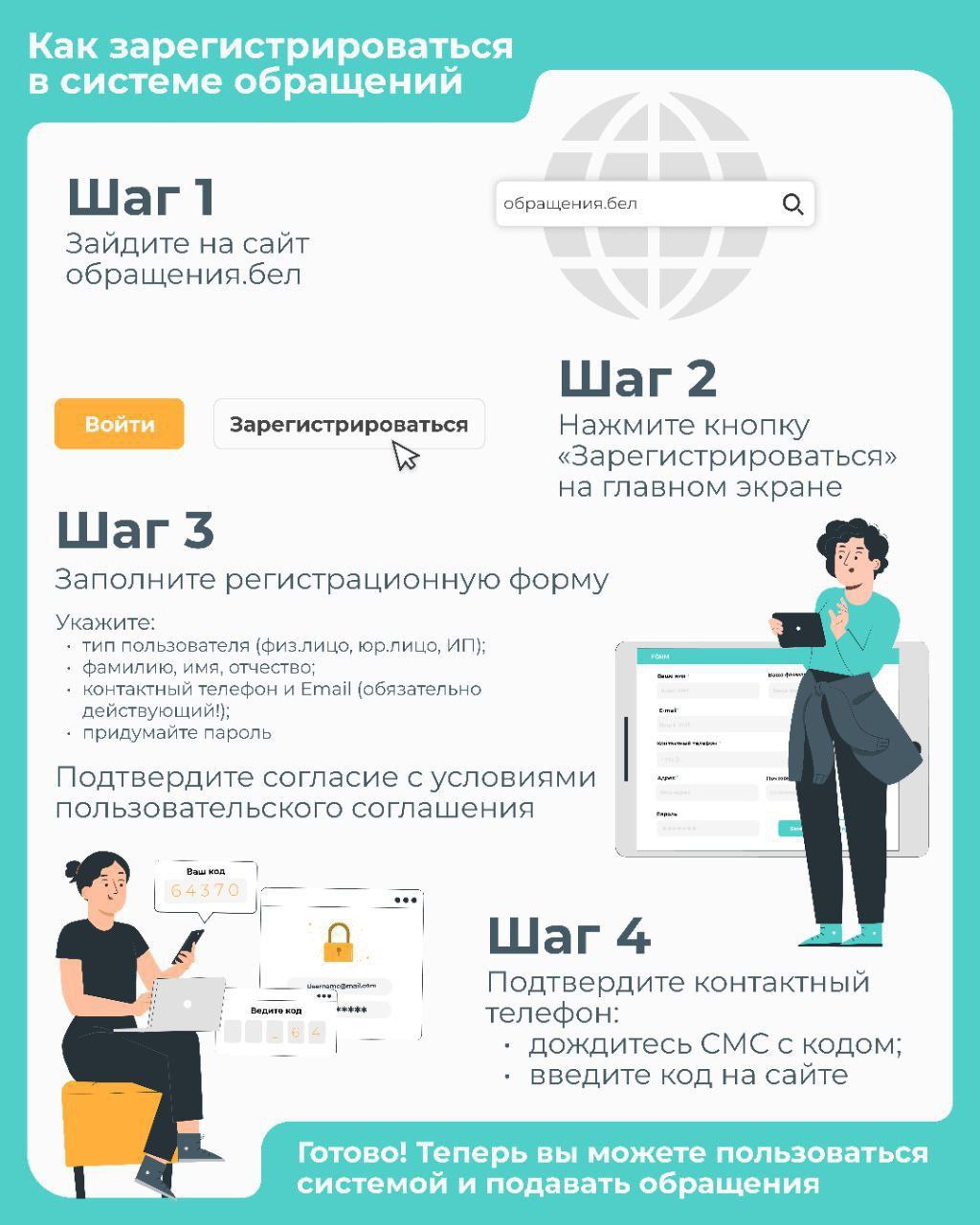 Доступ к Системе для заявителей бесплатный и осуществляется через сайт (http://обращения.бел), на котором необходимо пройти регистрацию, после чего Система формирует личный электронный кабинет заявителя.
