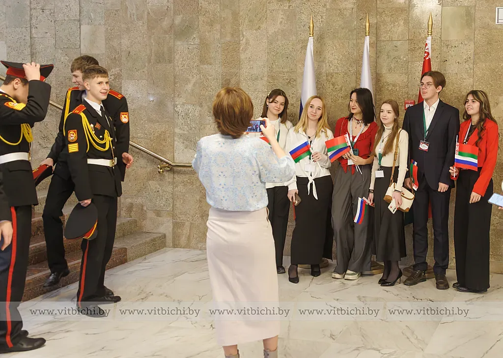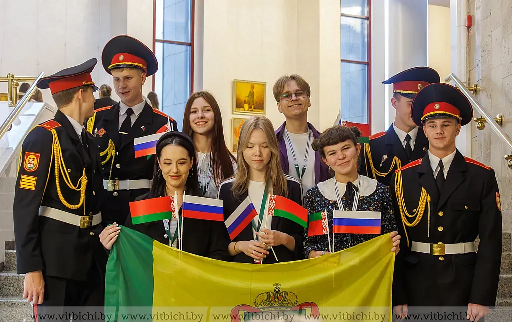 Перед началом торжественной церемонии открытия олимпиады «Два народа – история, культура, духовная общность» с ее более 200 участниками из примерно 30 команд из регионов России и Беларуси сфотографировался на память председатель Витебского облисполкома Александр Субботин.
